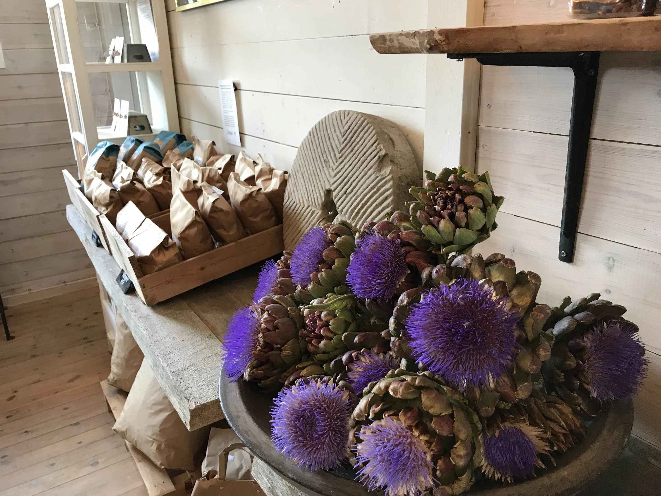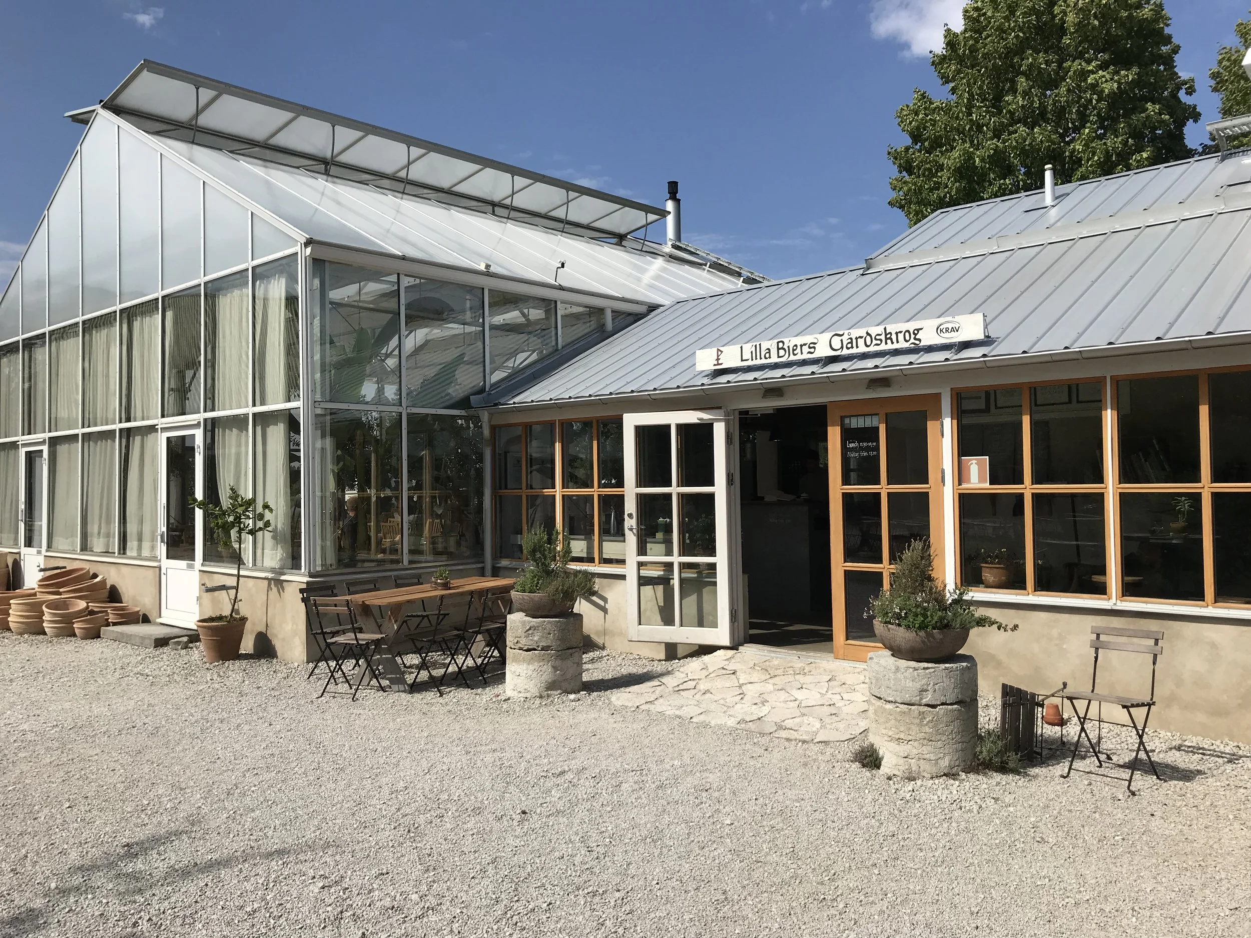 Also loving the organic vibe. At Lilla Bjers Gardstock, they grow, cook and eat: vegetables and salad mostly, eggs and fresh-baked sourdough, served in the greenhouse with a view to the chook yard or under the trees when the weather is fine. Fresh lingonberry juice is an optional extra.